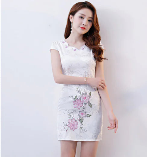 Featuring a chic oblique lapel and a tailored silhouette, this short cheongsam dress is a perfect blend of traditional charm and modern style. The dress comes in a variety of vibrant colors and is available in multiple sizes (S, M, L, XL, XXL, 3XL), ensuring a flattering fit for every body type.