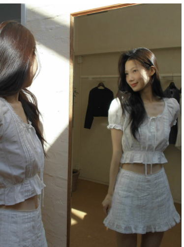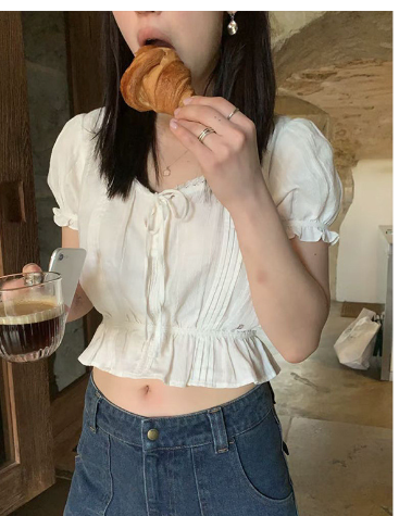 The intricate lace detailing adds a touch of femininity, while the cropped design beautifully highlights your collarbones, creating a stunning silhouette. This versatile top can be dressed up for a night out or paired with jeans for a casual day look.